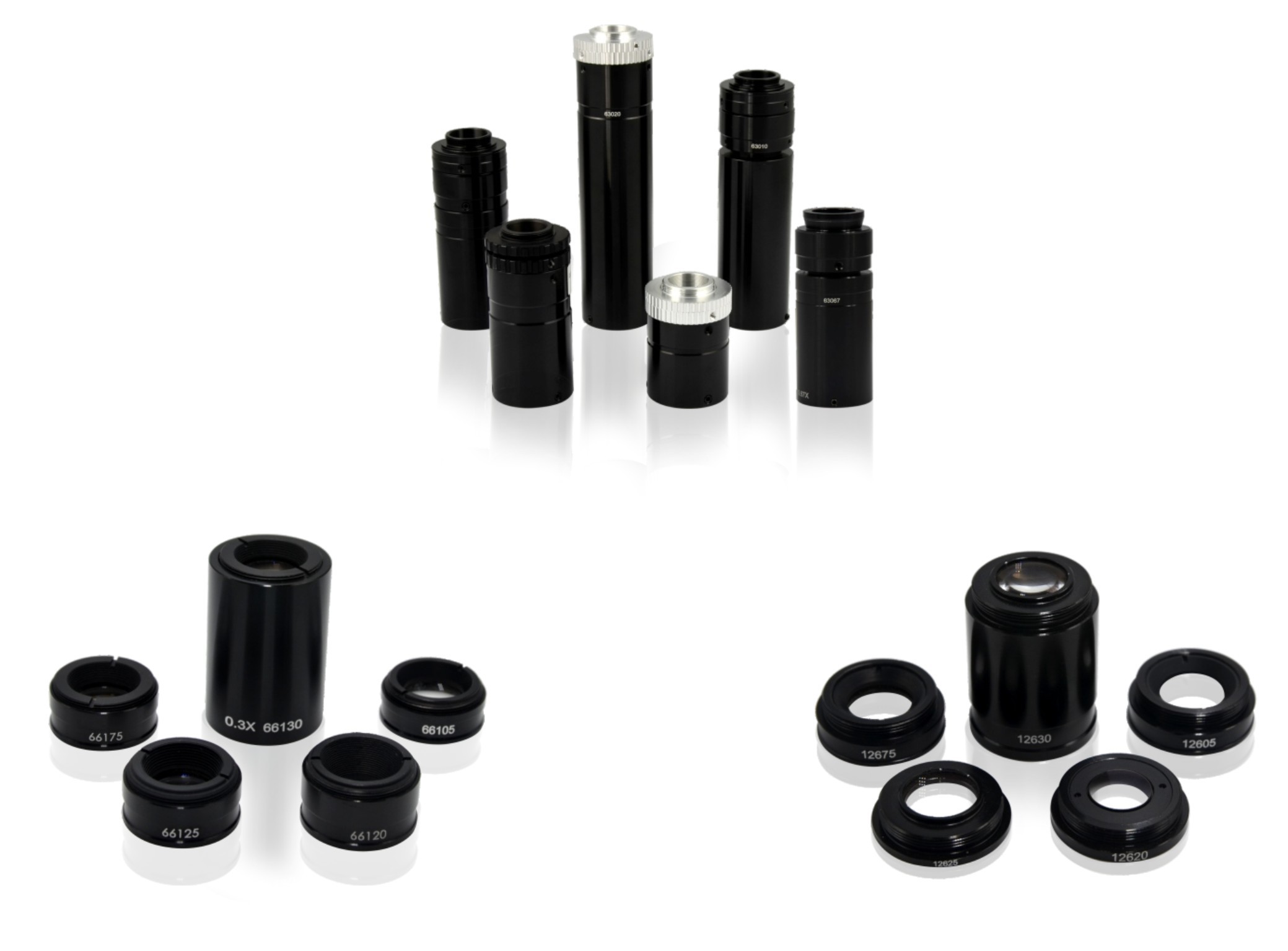 Hệ thống ống kính công nghiệp biến dạng thấp với dải phóng đại từ 0.25X đến 2X, được thiết kế cho các ứng dụng đo thị giác chính xác.